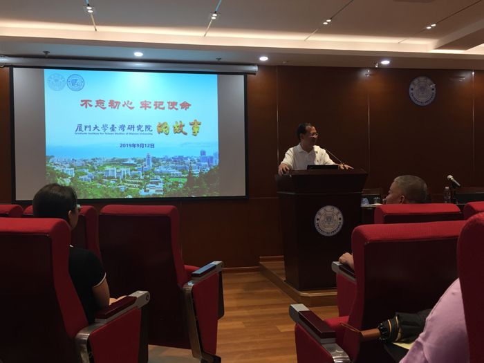 9月12日下午,我院2019级新生迎新典礼在嘉庚四420会议室举行。会上,李鹏院长为全体硕博士新生上了题为《不忘初心,牢记使命:厦门大学台湾研究院的故事》的开学第一课。