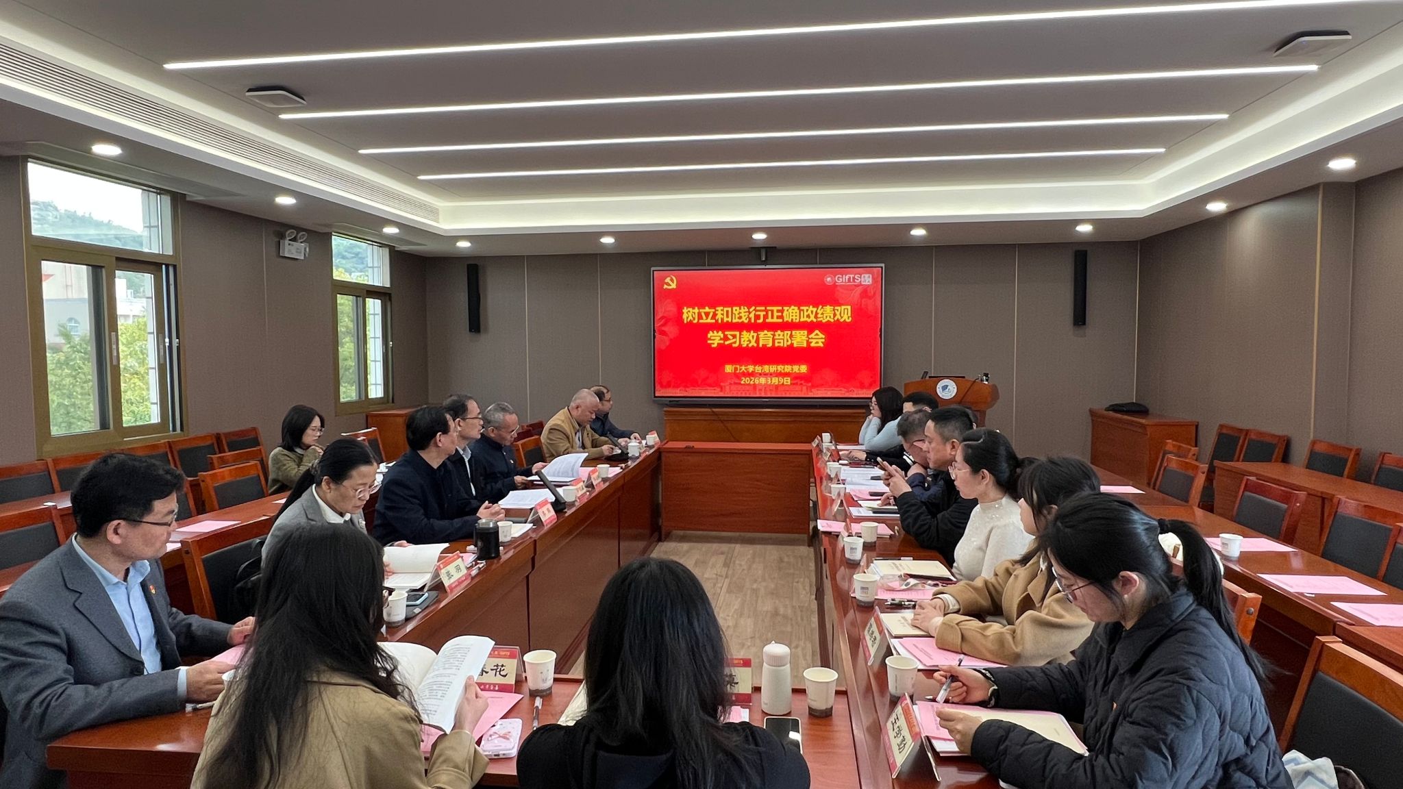 郭锦星书记在讲话最后强调,树立和践行正确政绩观,非一日之功,需久久为功。全院师生党员要以此次学习教育为契机,进一步统一思想、振奋精神、转变作风,以更加坚定的信念、更加务实的举措、更加优异的成绩,为推动研究院事业高质量发展、助力学校建成中国高等教育东南中心、服务国家对台工作大局作出新的更大贡献!