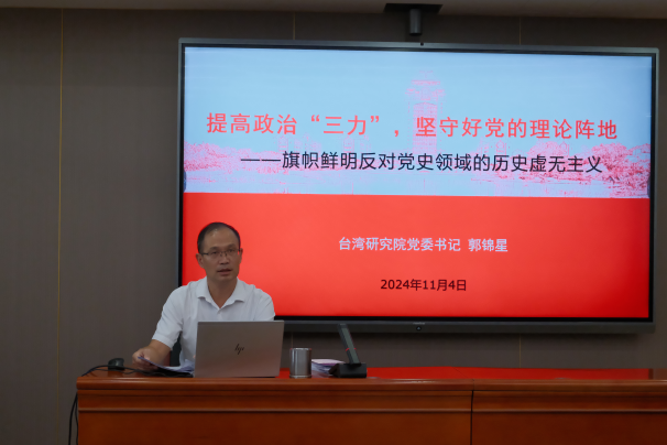 为深入学习贯彻习近平新时代中国特色社会主义思想和党的二十届三中全会精神,进一步提升入党积极分子和新发展党员的思想政治素质和理论水平,11月4日下午,台湾研究院党委党校在院507举办“红心向党”成长营集中培训班开班仪式暨第一次理论学习会。台湾研究院党委书记郭锦星、党委副书记陈文以及全体新发展党员和入党积极分子等参与本次活动,开班仪式由辅导员林晓培主持。