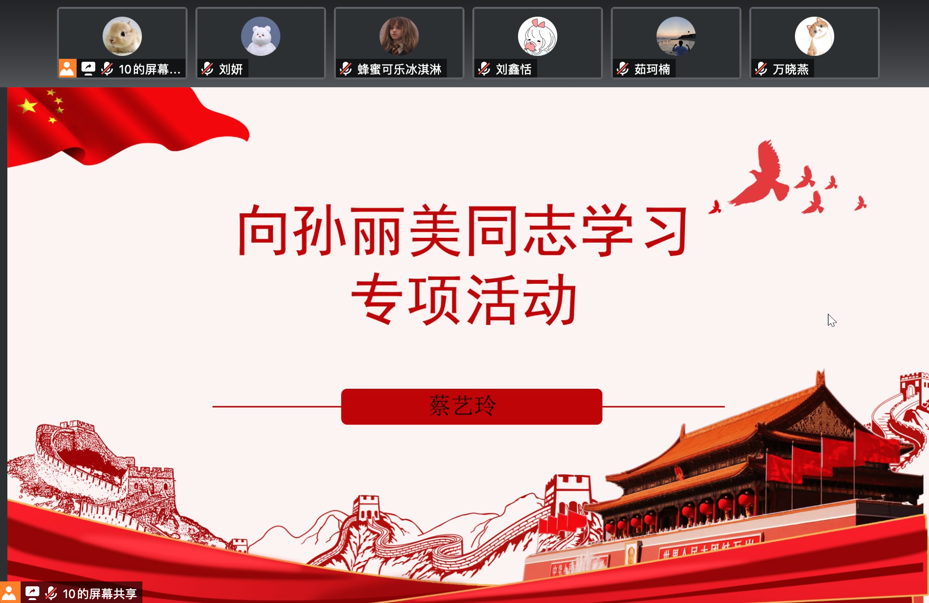 9月27日晚,我院2019级硕士生党支部开展党纪学习教育“固定党日+”活动,本次活动采取线上会议形式,以“向孙丽美同志学习”为主题,由我院历史所2019级硕士生蔡艺玲担任主讲人,2019级硕士生党支部和2019级硕士生团支部成员共同参与了此次活动。