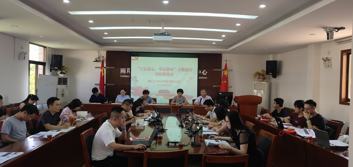 9月19日上午,厦门大学台湾研究院“不忘初心、牢记使命”主题教育动员部署会在院507会议室召开。院党委书记曾坤瑜作动员讲话,安排部署研究院主题教育有关工作。校第四巡回指导组组长司卓亚、副组长许美霞到会指导。院党委委员、各党支部委员参加会议。会议由院党委副书记陈文主持。