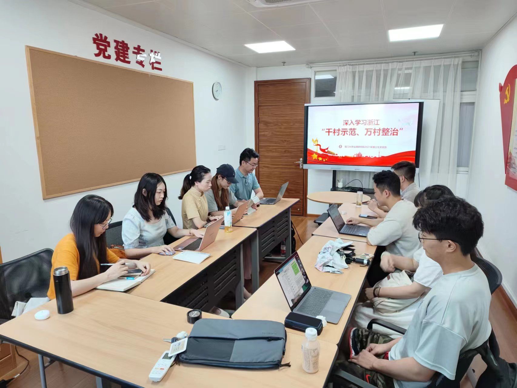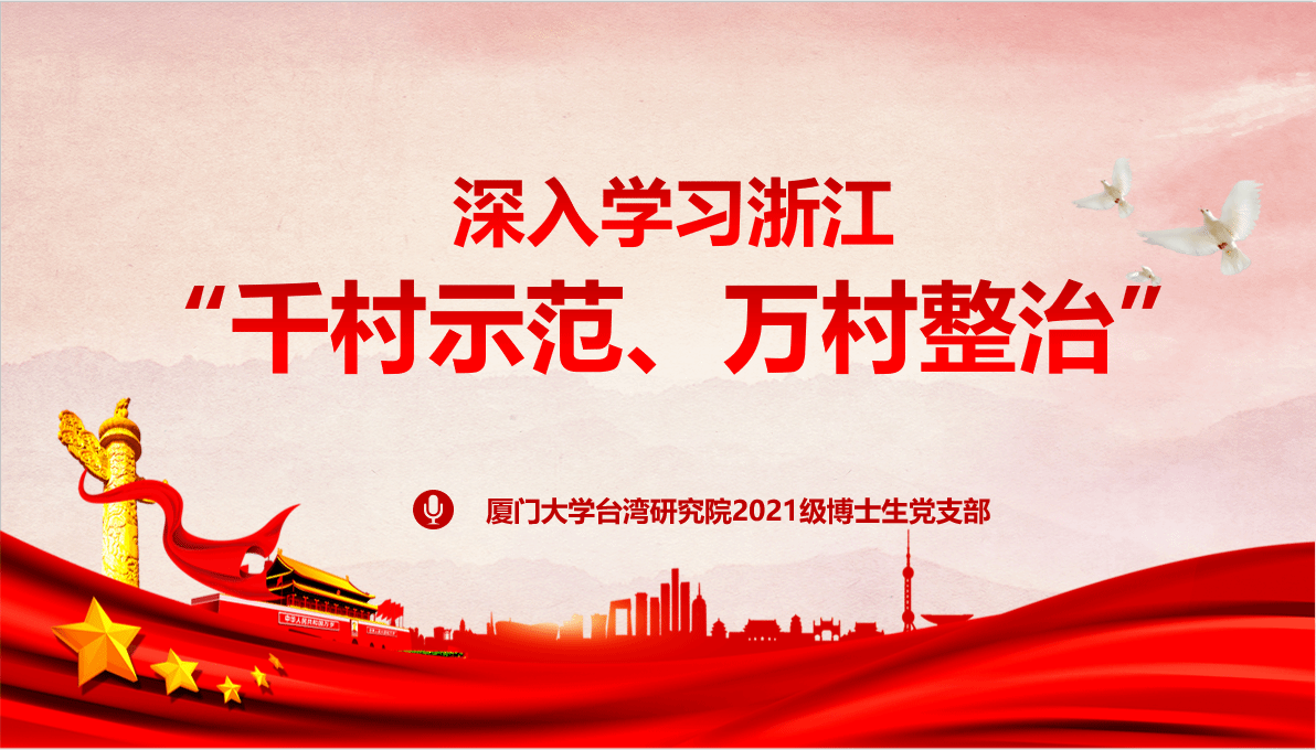 6月20日下午,2021级博士生党支部组织支部在厦大嘉庚四406教室开展学习贯彻习近平新时代中国特色社会主义思想主题教育第三次集中交流学习活动,活动主题是“学习浙江千村示范万村整治工程经验”。