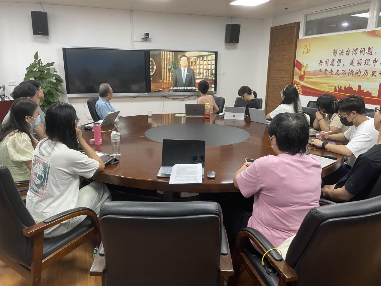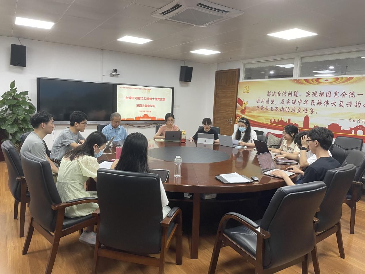 7月3日,台湾研究院2022级博士生党支部开展学习贯彻习近平新时代中国特色社会主义思想主题教育第四次集中学习暨“支部书记讲党课”活动。会议由党支部书记陈敏同学主持,学校基层党建工作联络员白锡能老师参加会议。