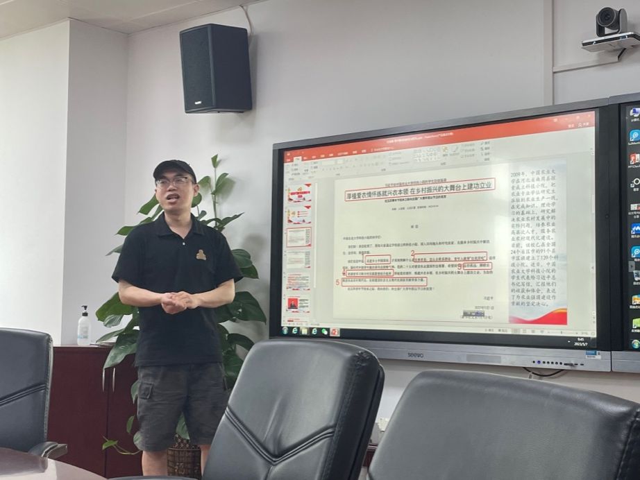 2023年5月5日,厦门大学台湾研究院2019级博士生党支部开展学习贯彻习近平新时代中国特色社会主义思想主题教育集中学习交流,支部党员杜世雄同志作《新时代青年的责任与担当》专题汇报,从“习近平总书记给青年人的信”“青年人在不同历史时期的奋斗”“新时代青年的责任与担当”三个方面展开学习。