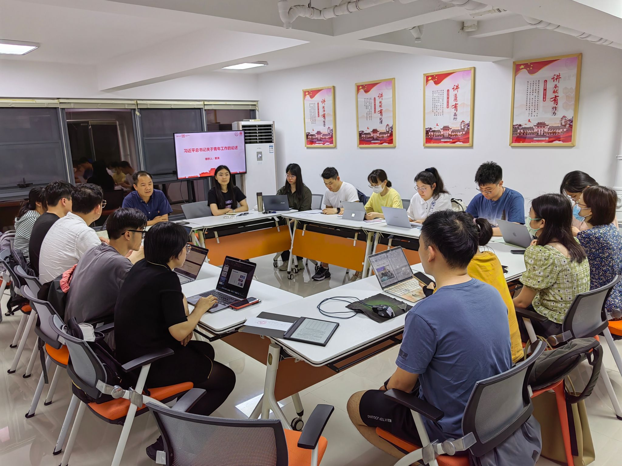 2023年5月5日,厦门大学台湾研究院2022级博士生党支部开展学习贯彻习近平新时代中国特色社会主义思想主题教育第一次集中学习交流暨“固定党日+”活动,本次集中学习的主题为“学习习近平总书记在党的二十大报告中对青年的寄语”,院团委书记黄涛老师参与了此次活动。