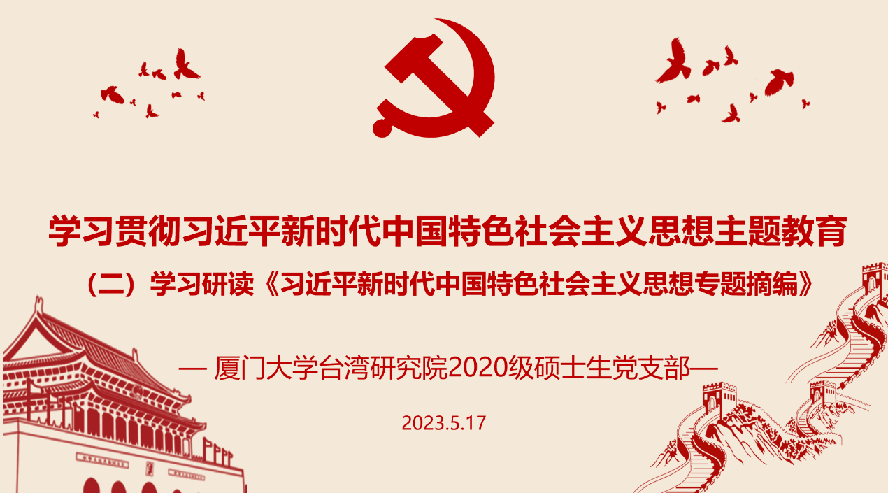 苏甜田同志指出,作为台湾研究院的学生党员,我们要深入学习领悟该章节的思想内涵。习近平总书记指出,“一国两制”是中国特色社会主义的伟大创举,是香港、澳门回归后保持长期繁荣稳定的最佳制度安排,必须长期坚持。解决台湾问题、实现祖国完全统一,是党矢志不渝的历史任务,是全体中华儿女的共同愿望,是实现中华民族伟大复兴的必然要求。我们要坚持贯彻新时代党解决台湾问题的总体方略,牢牢把握两岸关系主导权和主动权,坚定不移推进祖国统一大业。