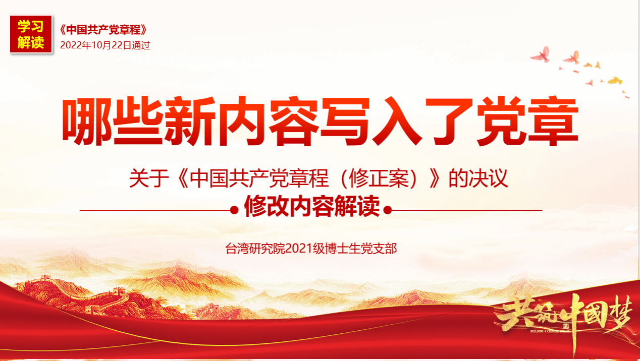 宋甜同志表示,党章的每次修改,体现党的理论创新、实践创新和制度创新的时代特色;党章的每次完善,彰显中国共产党人推陈出新、与时俱进的创造精神。透过党章的发展变化,可以看到我们党百年来走过的救国救民、强国强党的不平凡道路。百年党章建设史,就是浓缩的中国共产党历史,记录着我们党波澜壮阔的历史轨迹,展现着我们党成长、成熟、成功的艰辛历程,体现着我们党团结带领人民实现民族复兴伟业的奋斗进程。