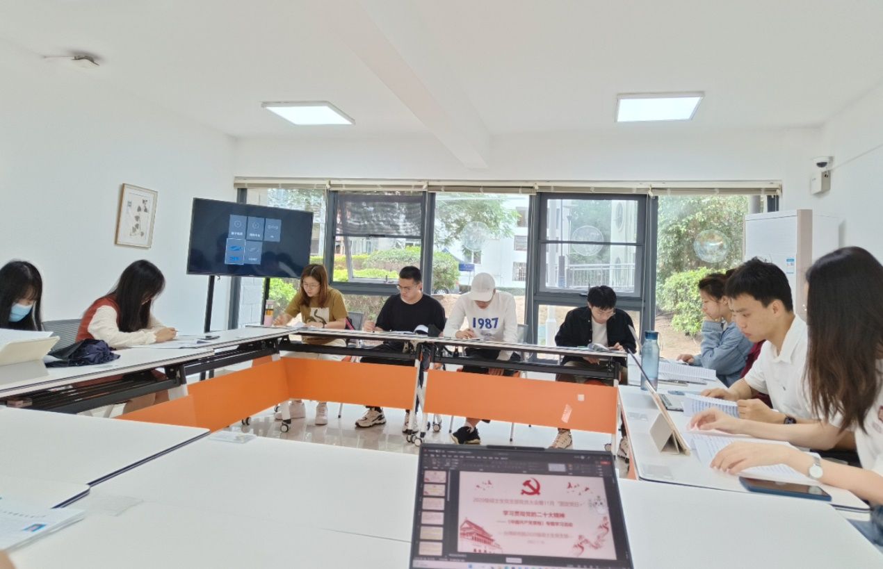 11月16日,厦门大学台湾研究院2020级硕士生党支部在海韵9共享学习空间党团活动室召开了11月党员大会暨“固定党日+”活动。本次会议主题为“学习贯彻党的二十大精神——《中国共产党章程》专题学习”,支部党建联络教师、院党委副书记陈文老师莅临指导。