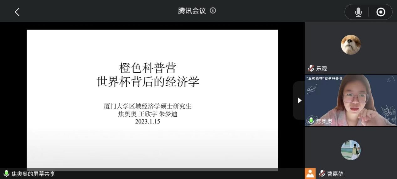 2023年1月14日至1月16日,2022级硕士生党支部组织开展了“五彩森林”空中科普营志愿服务活动。参与此次活动的学员主要为四五年级以及初中阶段的青少年儿童,活动受益达150余人次,累计志愿服务时长达130小时。