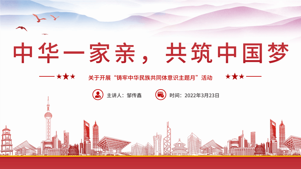 2022年3月23日,2021级硕士生党支部通过线上腾讯会议的方式开展了“固定党日+”活动,活动的主题为“中华一家亲,共筑中国梦”,以深入学习贯彻习近平总书记关于加强和改进民族工作的重要思想为指引。会议由支部书记邹传鑫主持,支部共11党员及预备党员参与了此次活动。