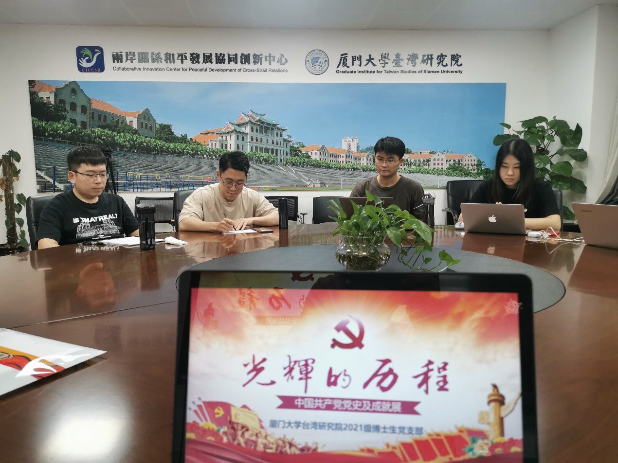 2022年4月27日晚,2021级博士生党支部在厦大嘉庚四418室组织开展“固定党日+”活动暨“光辉的历程:中国共产党党史及成就”党课学习活动。