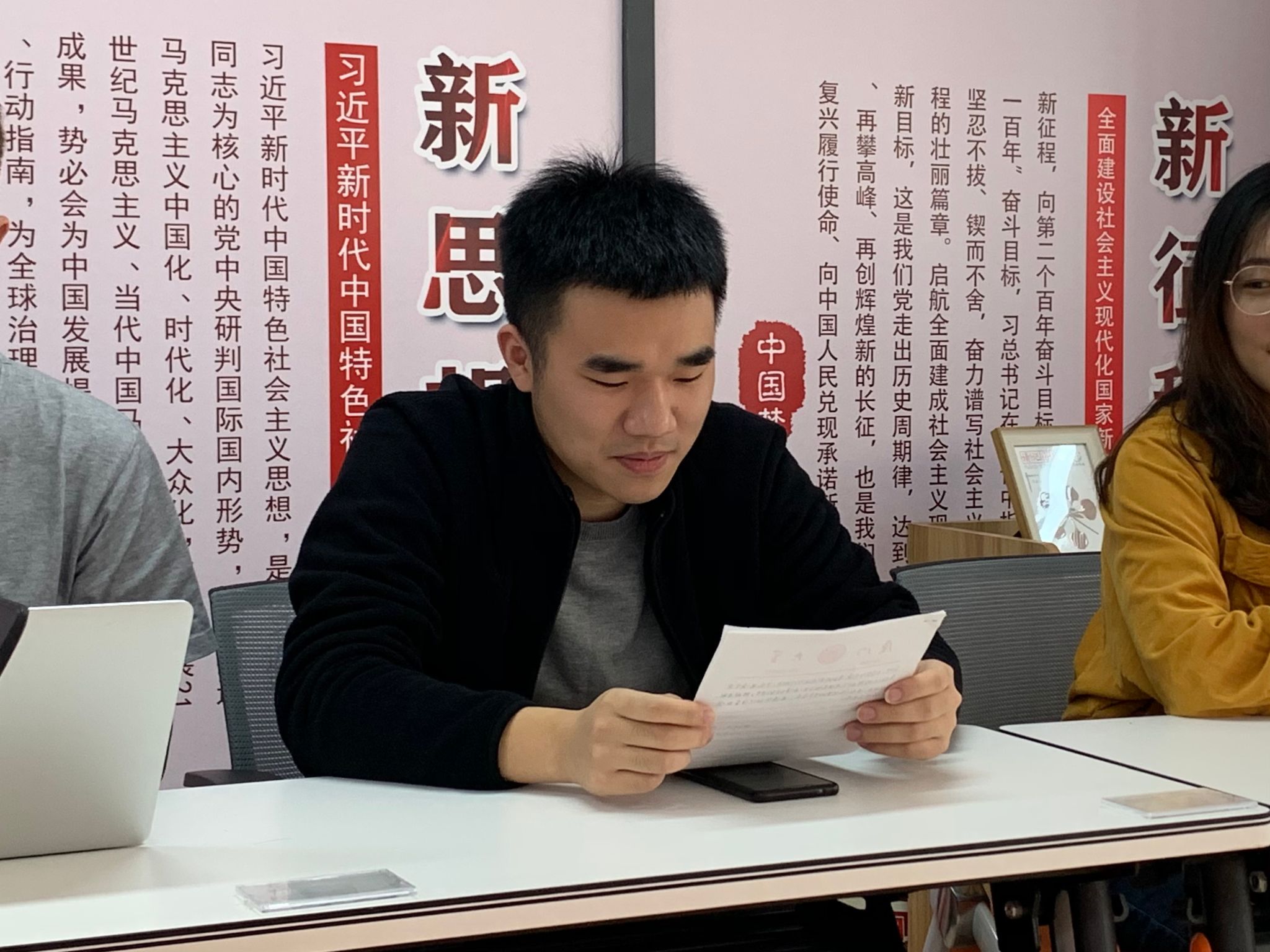 会议最后,支部书记肖子乐同志总结到,增进人民福祉是共产党员努力的目标,脱贫攻坚的重大胜利极大增强了人民群众的获得感、幸福感、安全感,改变了贫困地区的面貌,提高了群众生活质量。作为研究生党员的我们也应该学习广大党员干部在脱贫攻坚战中吃苦耐劳、甘于奉献的精神,结合自身专长,努力成为社会发展的推动力。