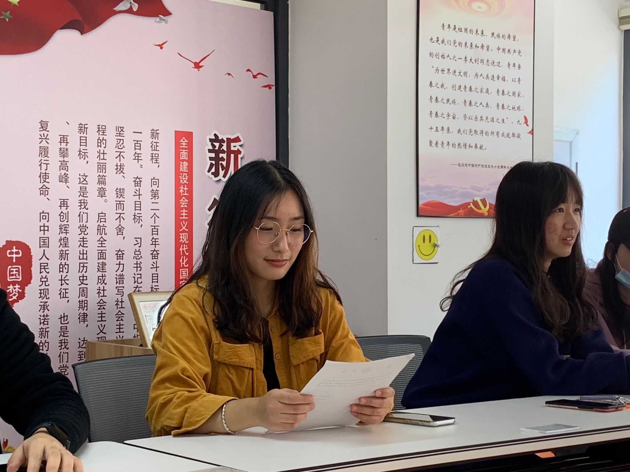 2020年12月27日,2020级硕士党支部在海韵学习空间党团活动室召开了党员大会暨12月“固定党日+”活动。本次党员大会的主要议题为讨论许晴同志、高宇轩同志的转正问题。转正大会的第一项内容为支部书记肖子乐同志介绍转正大会流程以及许晴同志与高宇轩同志的入党情况;会议第二项,许晴同志、高宇轩同志分别宣读了转正申请书的内容,表达了自身的转正意愿;会议第三项,预备期考察联系人苏甜田、魏祺钰同志分别对两位转正同学进行了综合评价,并表示两位同学符合转正要求;会议第四项,与会党员对两位同志进行了转正评议;会议第五项,支部正式党员对是否同意许晴同志、高宇轩同志转正进行了无记名投票;会议第六项,经过计票人、监票人的统计结果,支部书记宣布全体党员一致同意许晴同志、高宇轩同志的转正申请。最后,两位同志表示转正后一定会更加努力,带头发挥好党员的先锋模范作用。