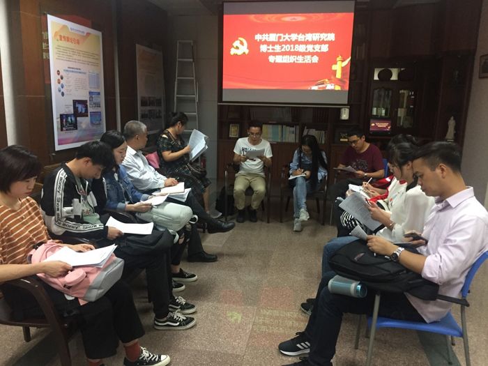 2018年10月22日下午,台湾研究院2018级博士生党支部在院一楼会议室召开了以吸取田佳良等事件教训为主题的专题组织生活会。院党委副书记陈文老师及支部在校党员出席,会议由支部书记王先伟同志主持。