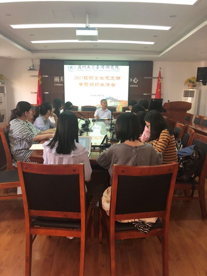 2018年10月24日,台湾研究院2017级硕士生党支部在学院507学术报告厅召开了围绕“吸取田佳良、周运中等事件教训,举一反三”为主题的专题组织生活会。本次生活会由支部书记姚雪琳同志主持,院党委副书记陈文及支部在校党员出席此次组织生活会。