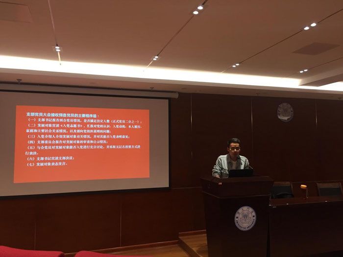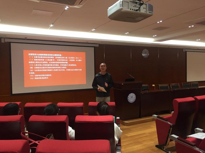 2018年12月5日下午,台湾研究院2018级博士生党支部在嘉庚四420教室召开党员大会,会议主要内容是讨论接收彭兴智同志为中共预备党员事宜,会议由党支部书记王先伟主持。