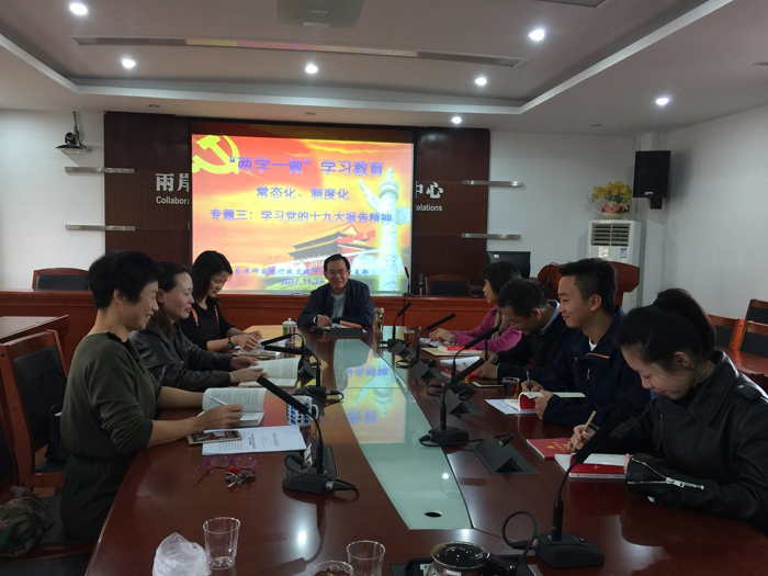 2017年11月23日下午,我院行政文献中心教工党支部开展了“两学一做”学习教育常态化制度化第三专题学习,按照学校及研究院的统一部署,组织党员进行集中学习、开展专题研讨,深入学习贯彻党的十九大精神,强化“四个意识”、坚定“四个自信”。