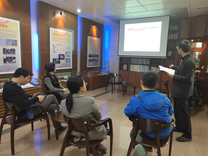 3月4日,为了深入学习贯彻习近平新时代中国特色社会主义思想,按照《中国共产党支部工作条例(试行)》和中组部、省委教育工委、校党委、院党委相关精神,历史文学党支部召开2018年度组织生活会,并开展民主评议党员。会议由支部书记黄俊凌老师主持,在厦全体党员与会,院党委曾坤瑜书记莅临并发表讲话。