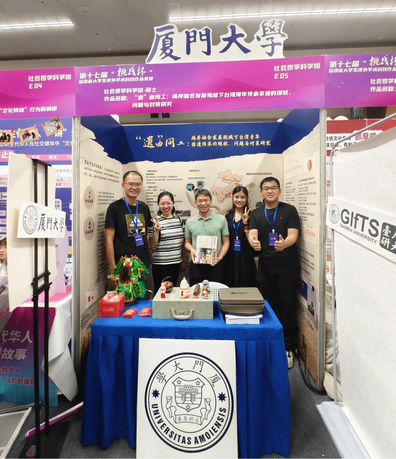 此外,此次优异成绩的取得,得益于研究院深厚的学术底蕴和科研氛围,也离不开研究院师生的高度重视与全力支持。在备赛期间,项目指导老师、台湾研究院副院长刘奎教授始终关注团队调研进展,多次就研究报告的框架结构、调研细节及作品正文提出专业指导意见,并协助团队统筹答辩安排等相关事宜;团队领队、台湾研究院团委书记陈静娴老师全程参与备赛与参赛过程,对各个环节悉心指导,为项目的顺利推进提供了坚实保障。此外,研究院还组织多位专家学者为团队作品的修改与完善提供了宝贵建议,进一步提升了项目的学术质量与表达水平。