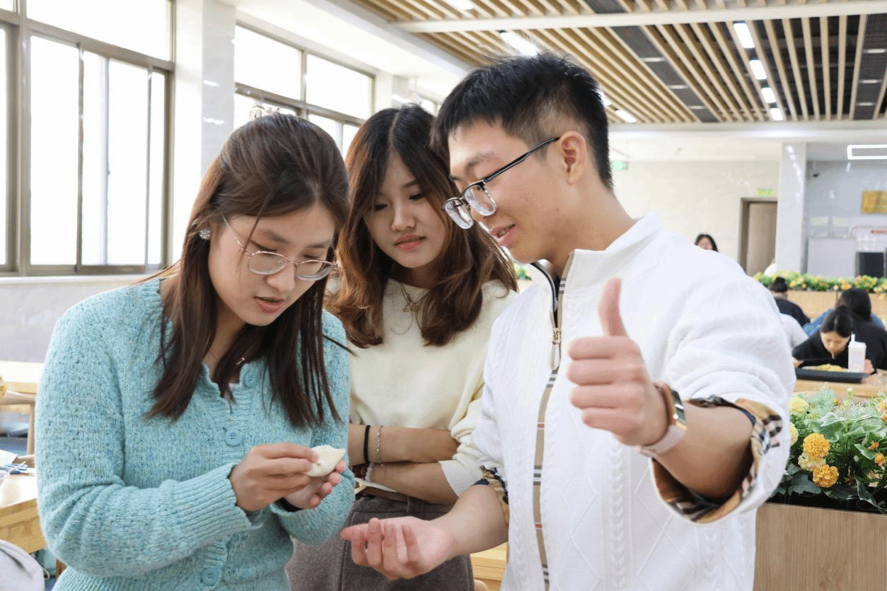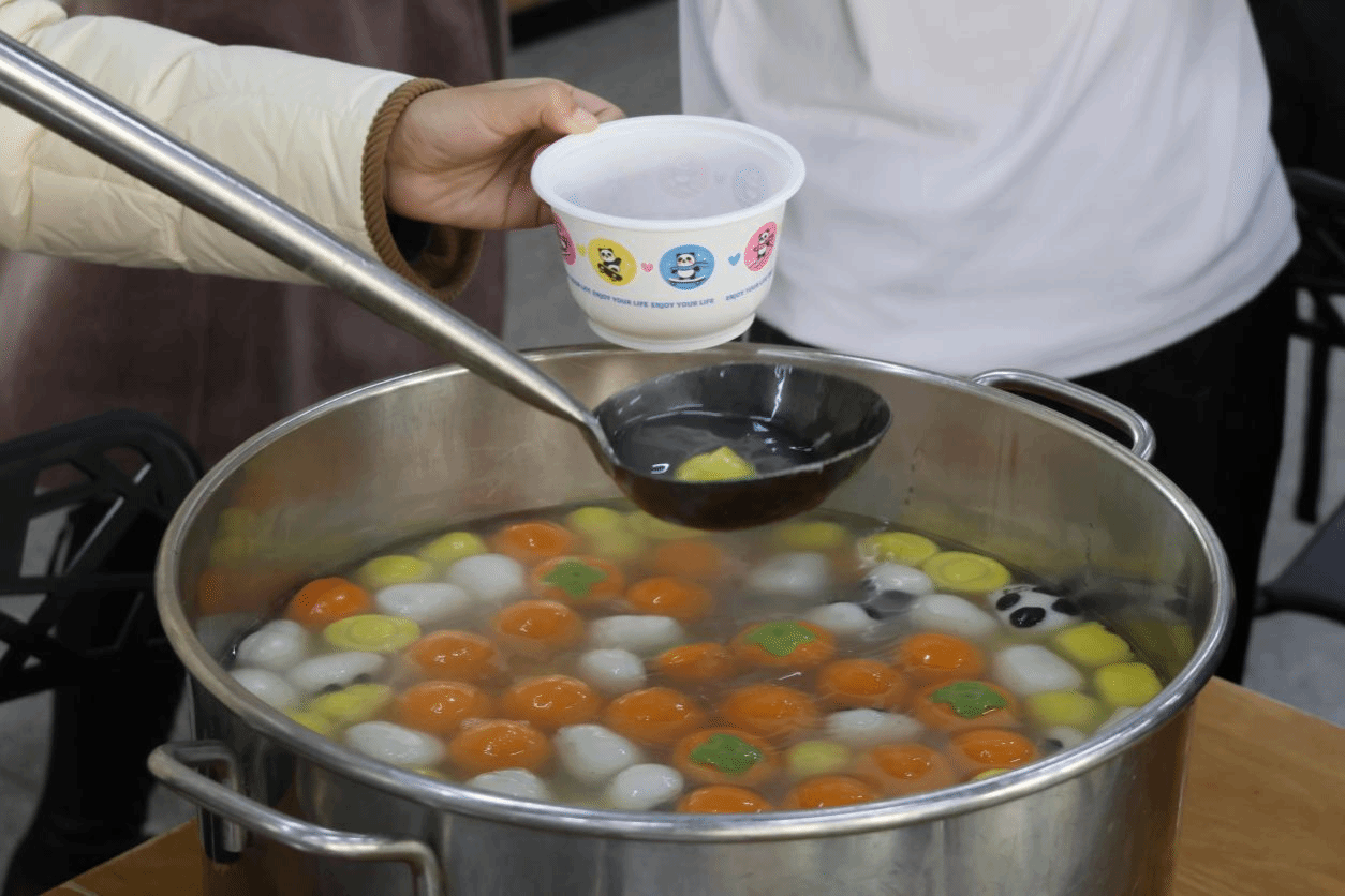 活动现场特意准备了汤圆供师生品尝。大家一边等待饺子上桌,一边品尝着软糯汤圆。同时,有奖竞答环节闪亮登场。大家踊跃发言、积极抢答,围绕冬至主题共话传统、品读诗词,现场互动踊跃,气氛热烈。欢声笑语在空气中弥漫,大家一同沉浸在中华文化的深厚底蕴里,深切感受着两岸同胞割不断地血脉亲情。