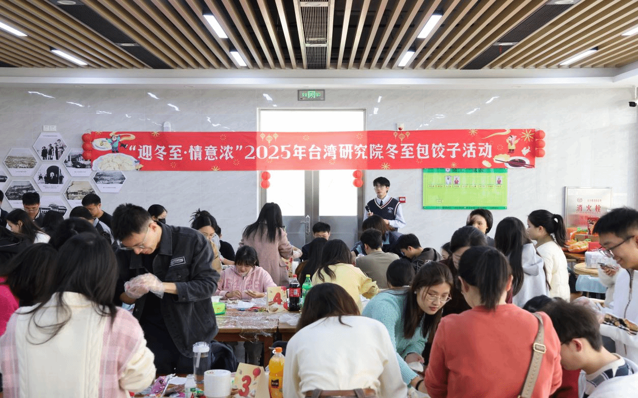岁暮天寒,冬至阳生。当白昼最短的日子来临,我们对团圆温暖的期盼最深。在这个寓意“团圆”的传统佳节里,何不暂离书海,与师长挚友围炉相聚?冬至不仅是自然节气,更是海峡两岸同胞同根同源、共享相同民俗的文化见证。为弘扬中华优秀传统文化,增进两岸学子心灵契合,12月14日上午,我院研究生会和厦门大学中华文化促进学社联合举办“迎冬至·情意浓”冬至包饺子活动,我院学生和来自我校各院系台港澳学生共60余人一同包饺子、煮汤圆,提前感受冬至的节日氛围。台湾研究院党委书记郭锦星、副院长刘奎、团委书记陈静娴、历史所教师王琪颖也参加了本次活动,与学生们围桌畅谈。