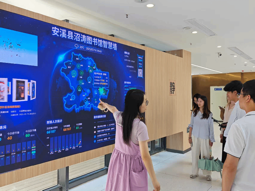 第二站,实践团到达了安溪沼涛图书馆。沼涛图书馆前身为安溪县图书馆,后经台胞陈沼涛捐赠而得名。沼涛图书馆设立了元宇宙阅读中心、智慧阅读服务,还形成了茶文化与台湾研究的特色收藏。