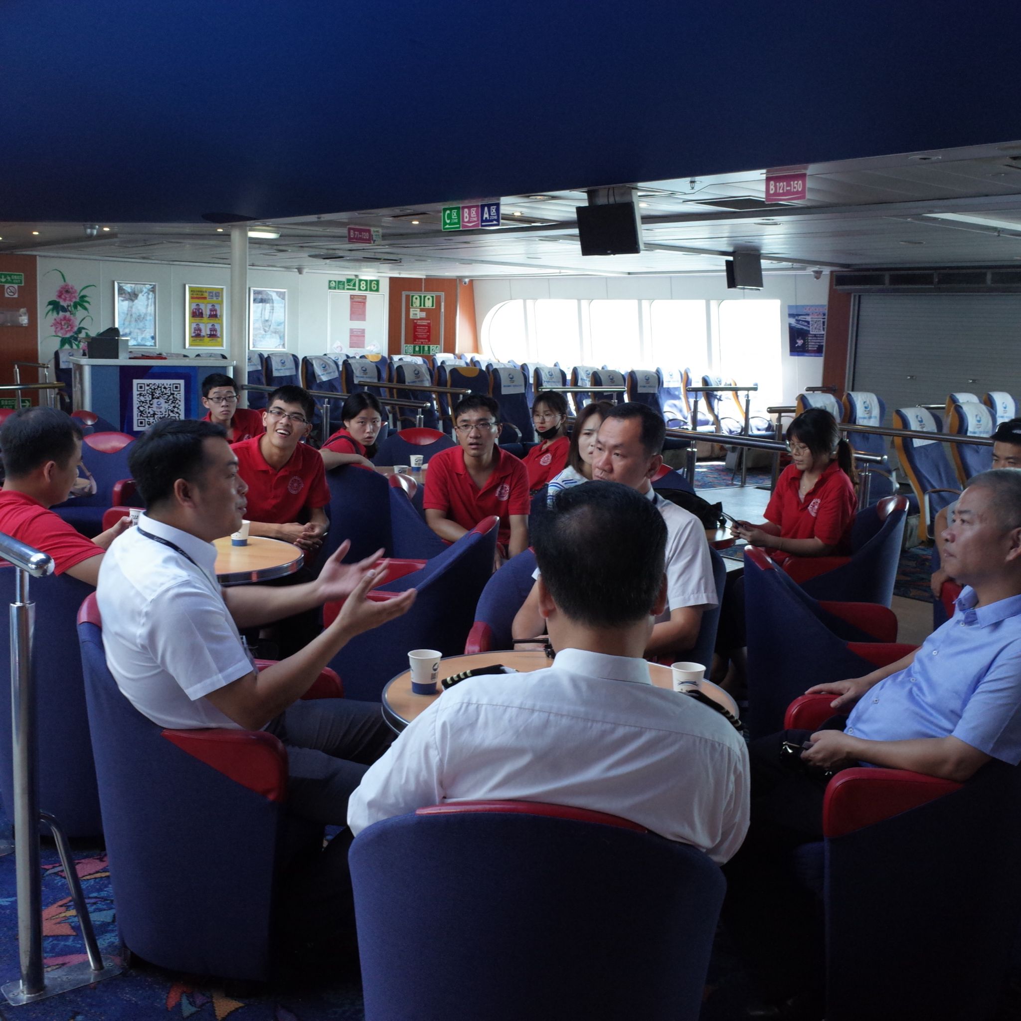 参观完“海峡号”客轮,团队马不停蹄地前往平潭团区委进行座谈。团区委书记徐寅生、团区委办公室副主任科员李银发、团区委组织与统战部负责人陈彩凤等同志接待了实践团队。团区委几位同志重点为团队介绍了他们在推动当地与台湾青年交流方面所做的工作,尤其是如何吸引更多台湾青年到大陆就业、创业。团区委以“台湾青年平潭创业就业引领计划”为例,详细介绍了在推进两岸青年交流和融合方面采取的工作方式方法。细致而卓有成效的工作是台湾青年能够扎根落地的关键,平潭团区委的很多经验、方法都值得我们学习借鉴。