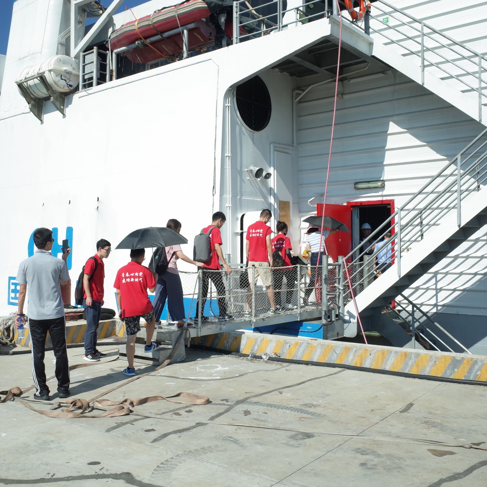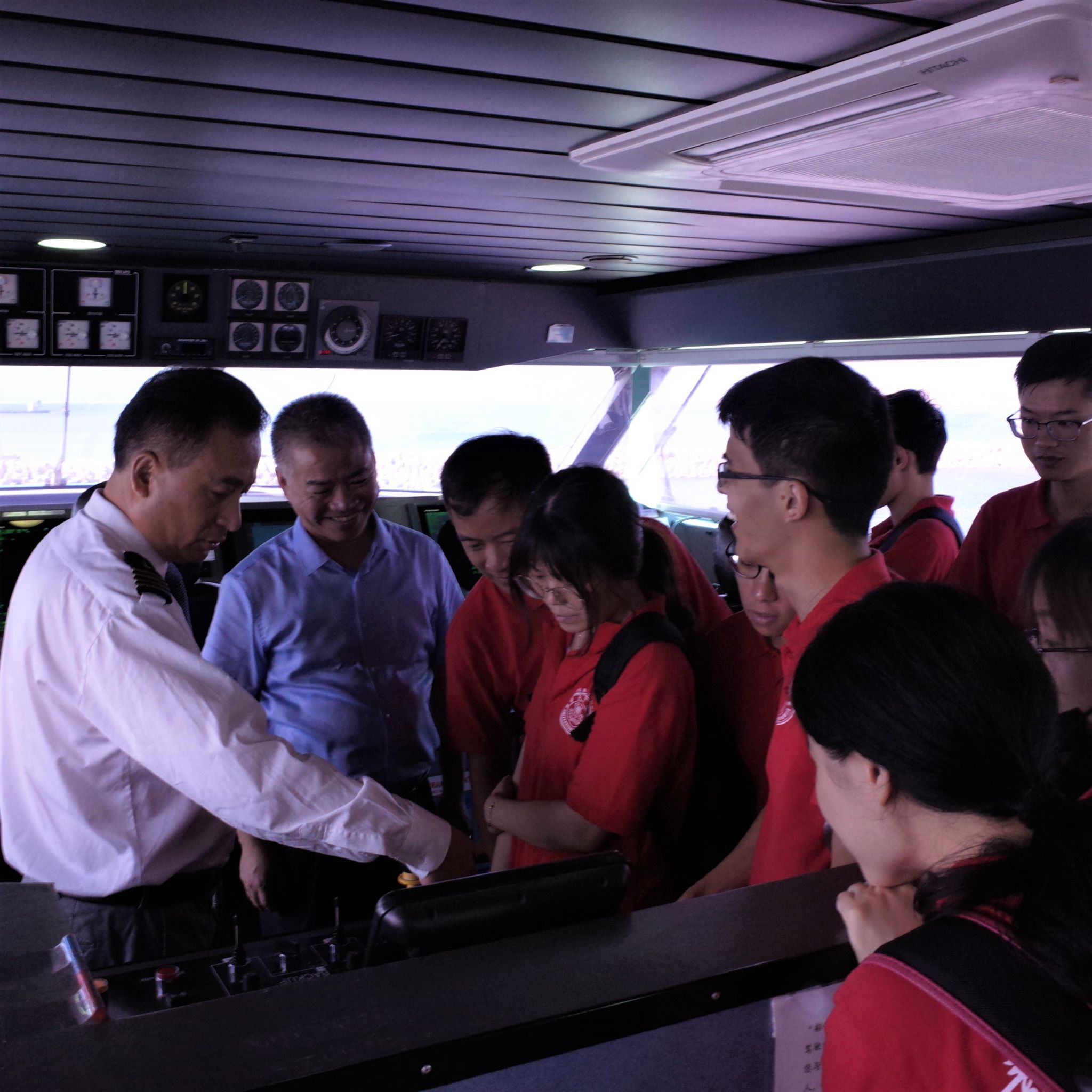 7月31日,实践团队首先前往平潭澳前客运码头参观“海峡号”客轮。澳前客运码头是往来大陆与台湾的重要航运枢纽,自2011年建成以来,日益成为两岸民众往来的重要通道。该码头每日均有航班往返两岸,目前已开通平潭至台北、台中的航线,平潭至高雄的航线也已在规划中。“海峡号”和“丽娜号”负责执行两地航运任务,每船载客数约800人,航速超过50节/时,两船同为目前世界上最快的客货滚装船,从平潭出发3小时内便可抵达台北或台中。