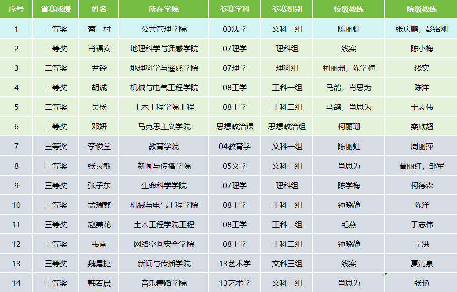 根据广东省总工会、广东省教育厅于于2024年12月31日发布《关于广东省第七届高校青年教师教学大赛获奖情况的通报》(粤工总2024年22号),广州大学14位教师分别参加文科、理科、工科、思想政治理论课专项等四个赛道,经过激烈角逐。其中,我院院友蔡一村获青年教师教学大赛一等奖。