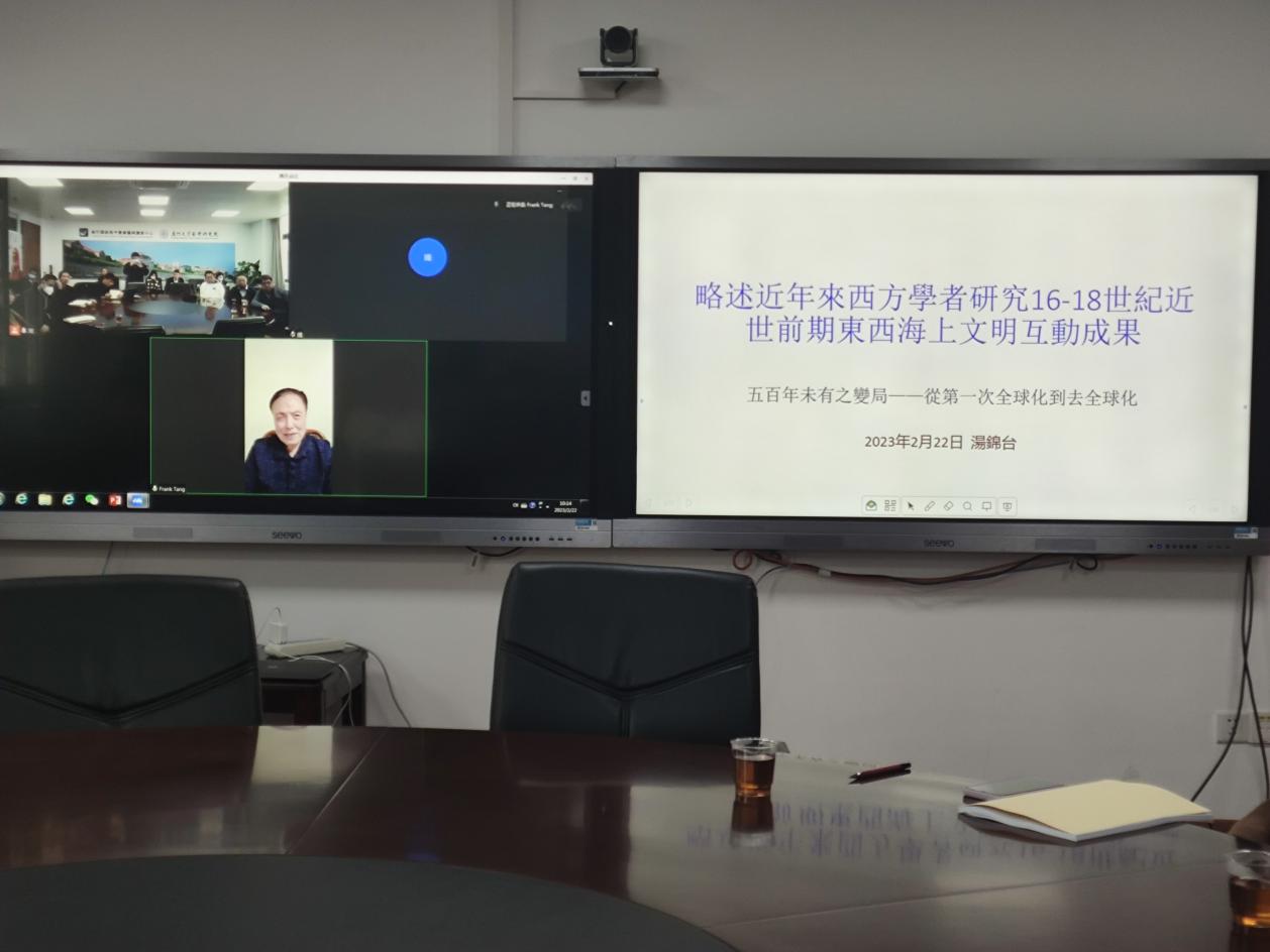 2月22日上午,纽约两岸历史文化研究中心汤锦台主任应邀于线上为我院师生做“略述近年来研究16-18世纪近世前期东西海上文明互动成果”主题讲座。我院师生在厦大嘉庚四418参加视频会议。讲座由我院历史所所长陈忠纯教授主持,福建社会科学院研究员杨彦杰、厦门市历史影像研究会副会长梁忠军、我院历史所邓孔昭教授、黄俊凌副教授、陈思副教授、王玉国助理教授、王琪颖助理教授、社会所张彩霞助理教授及我院历史所部分硕博士生参加讲座。