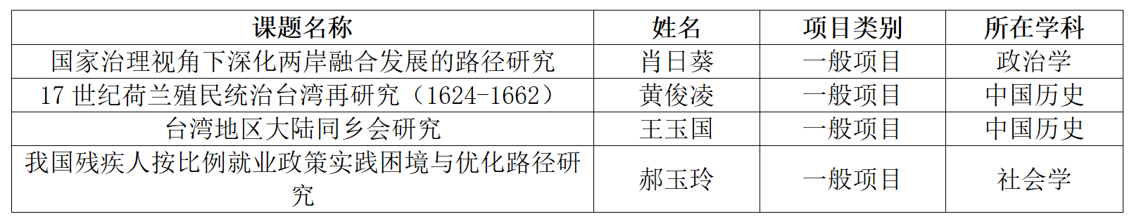 9月13日,全国哲学社会科学工作办公室公示了2022年国家社科基金年度项目立项结果,厦门大学共51项项目获立项公示,并列全国高校第三位。其中,我院获批4项一般项目,创历史新高。