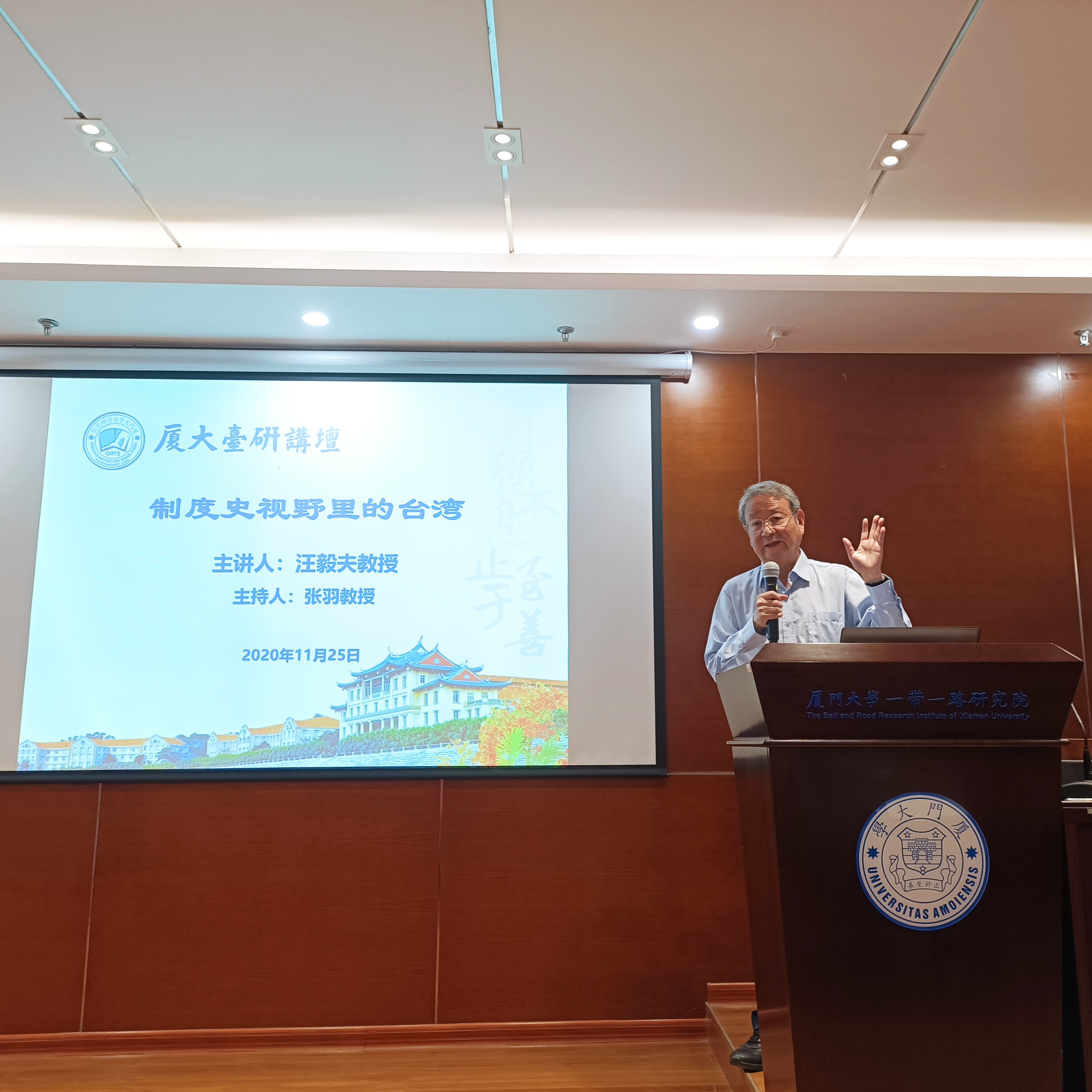 11月25日晚,汪毅夫先生为我院师生作“制度史视野里的台湾”主题讲座。本次讲座由厦门大学台湾研究院副院长张羽教授主持,历史所所长陈忠纯教授、福建东宇影视公司编剧梁忠军以及各所硕博生到场参加讲座。