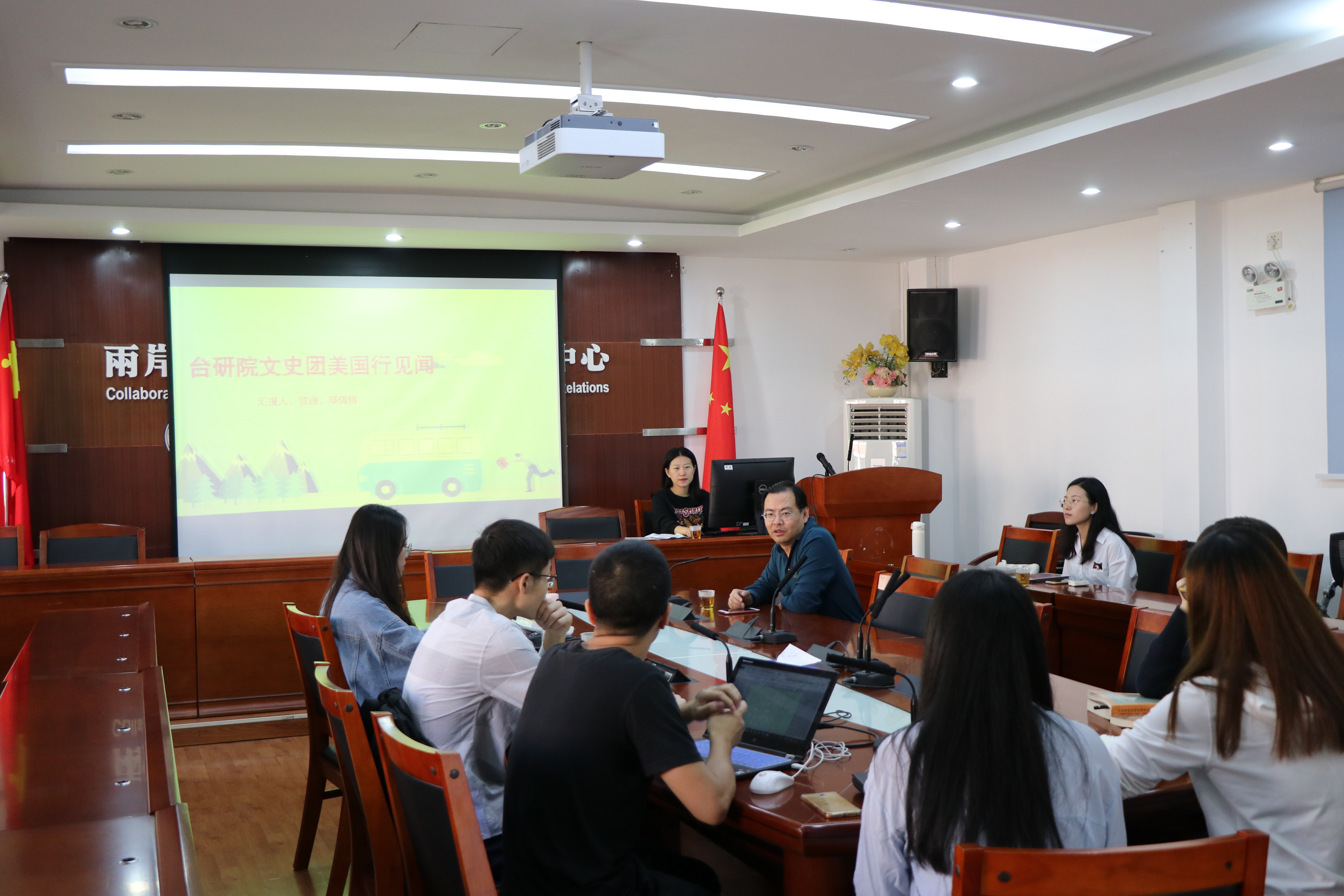 2018年11月15日上午九点半,厦门大学台湾研究院第二十三期“台海相对论”在院五楼会议室顺利举办。本次讲座由我院16级历史所硕士邓倩倩、18级文学所博士贺迪两位同学为大家分享主题为“台研院美国行见闻”的讲座,本次讲座由李鹏院长做评议,我院18级硕士刘雅雯主持会议。