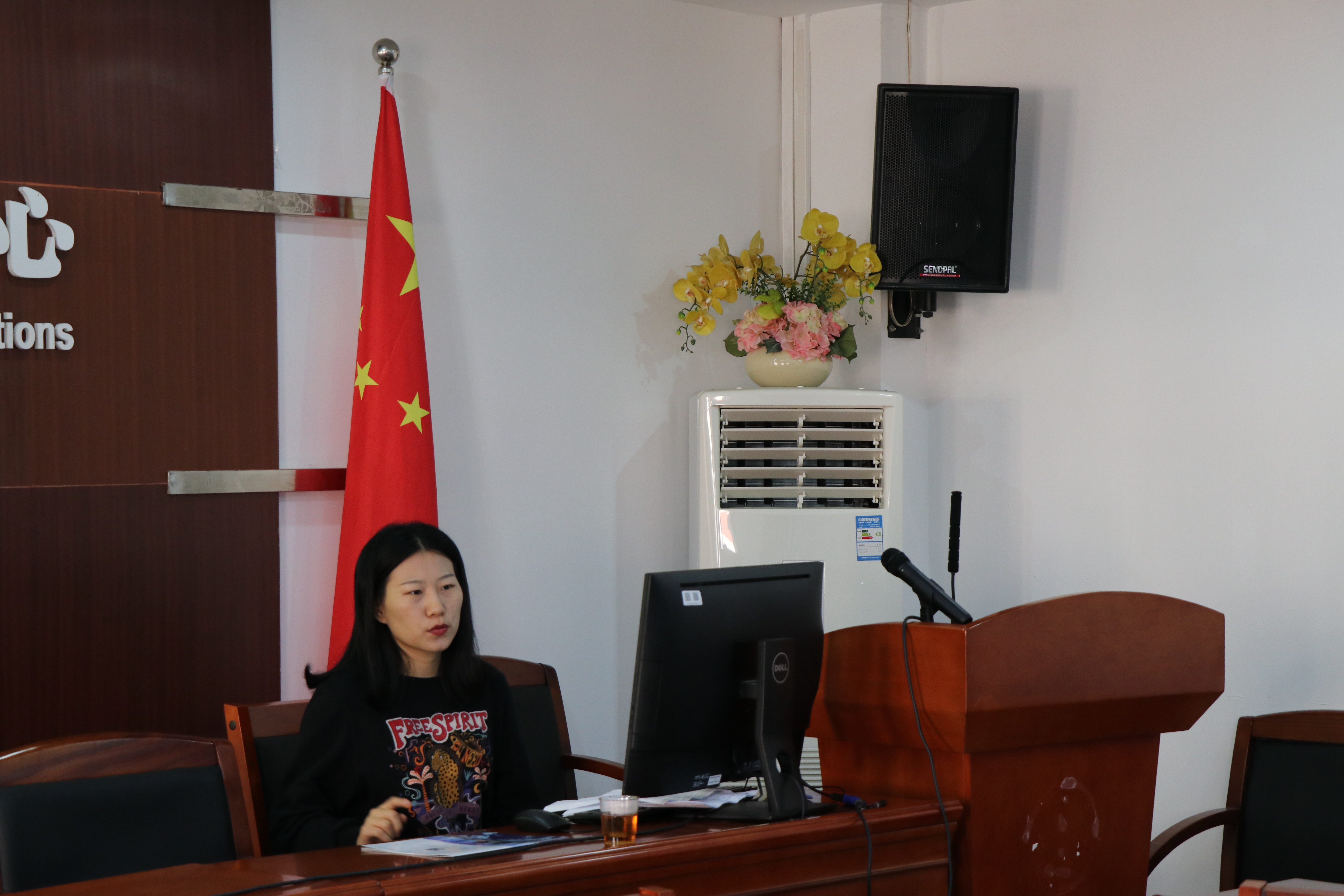 讲座的后半部分由邓倩倩同学为大家继续分享。首先她介绍了费正清中国研究中心的概况,并与大家分享旅途中的趣事。其次对宋怡明、郑振满、林孝庭等学者研究和著作进行了讲解。针对卫斯理安大学,她主要介绍该大学的基本情况和本科生学业情况,并指出其东亚研究对语言训练的注重,尤其是中日韩语。他们还参与了东亚研究中心的午餐会,以及关于东亚研究中心介绍的opening house,与该校师生进行了近距离的交流。在与纽约亚美文化协会及汤锦台等旅美文史爱好者的交谈中,他们就两岸关系和教育、文化交流及东亚格局研究等进行讨论。此行他们还参观了哥伦比亚大学,邓倩倩讲述了哥伦比亚东亚系的创建与中国有着一定渊源的故事。在讲座的最后她用在斯坦福拍到的一张海报宣传语作为结尾“回溯历史、立足现在、展望未来”,她认为要充分了解历史,才能更好的展望未来。