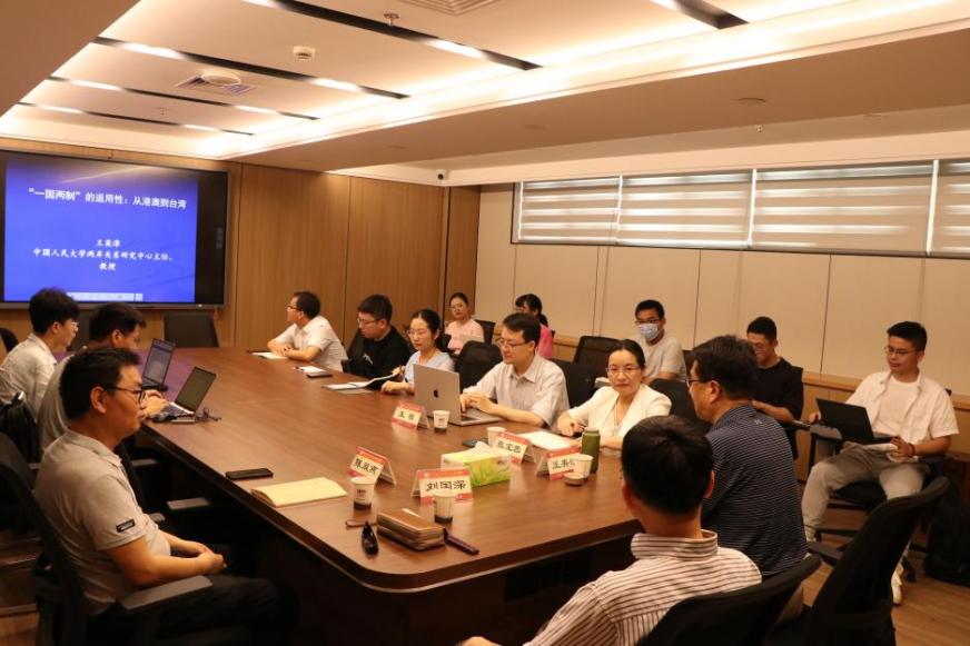 6月12日,中国人民大学两岸关系研究中心主任、厦门大学港澳台研究中心学术委员王英津教授应港澳台研究中心邀请,来校作“‘一国两制’的适用性:从港澳到台湾”的专题讲座。本次讲座由厦门大学港澳台研究中心学术委员、台湾研究院特聘教授刘国深主持。厦门大学港澳台研究中心学术委员会主任、台湾研究院院长李鹏教授,中心主任张宝蓉教授、《厦门大学学报(哲社版)》编辑部副主任陈双燕、中心研究员王程助理教授等师生出席讲座。