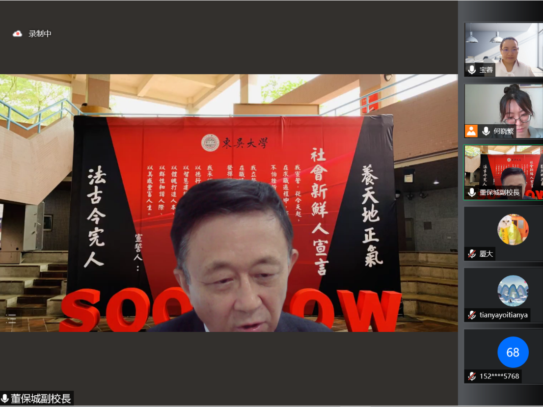 4月13日上午,台湾东吴大学副校长董保城教授应我院两岸关系研究所邀请,在线做题为“台湾教育法律法规政策的现状及未来”的专题学术讲座。院长李鹏教授主持,两岸所所长张宝蓉教授、何晓繁助理教授、张彩霞助理教授,以及教育研究院副院长覃红霞教授等近百名师生参加此次讲座。