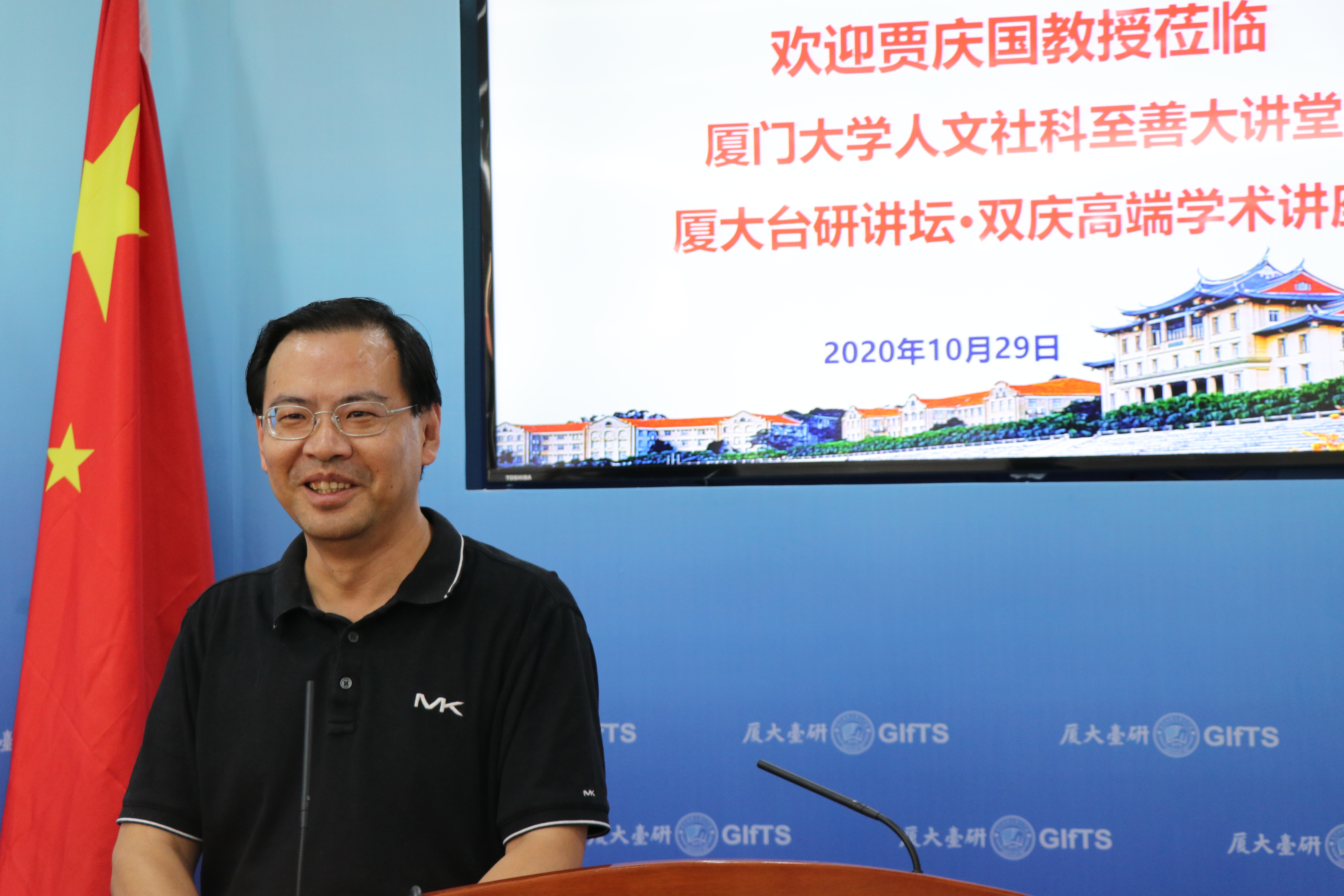 李鹏院长代表本院师生对贾庆国教授致以了诚挚的感谢,赞扬了其在讲座过程中问题意识清晰、发人深省,展现出了当代中国学者的风范,并相信贾教授的精彩讲述会对同学们在学术研究上带来诸多启发。正逢厦门大学百年校庆和台湾研究院40周年院庆,贾庆国教授的讲座正式开启了为庆祝厦门大学百年校庆和台湾研究院40周年院庆,由厦大台研讲坛举办系列“双庆高端学术讲座”的序幕。