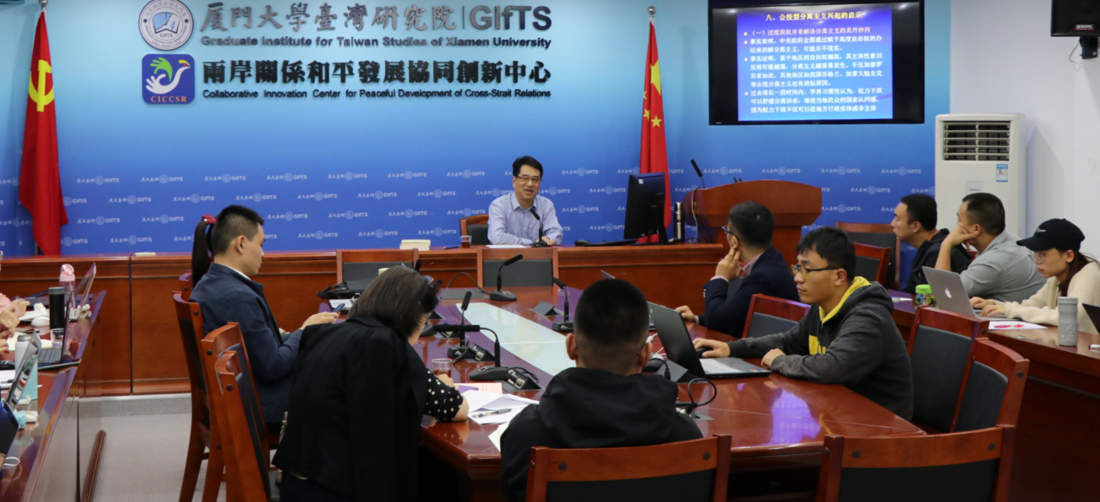在互动阶段环节,王英津教授回应了在场听众提出的多个问题,包括国家结构对于分离主义的影响,主权原则对分离主义思潮的限制,台湾地区“台独公投”的非法性等,会场气氛热烈。