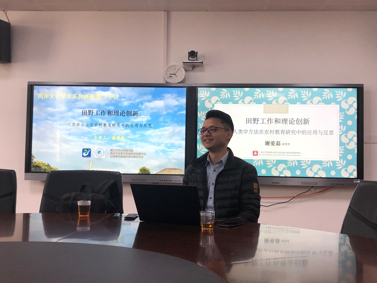 12月12日,广州大学副教授、广州大学“国家高层次人才”入选者谢爱磊老师来访我院,做“田野工作和理论创新——人类学方法在农村教育研究中的应用与反思”主题讲座。此次讲座着重关注研究方法在学术研究的使用以及如何通过田野调查进行理论创新。