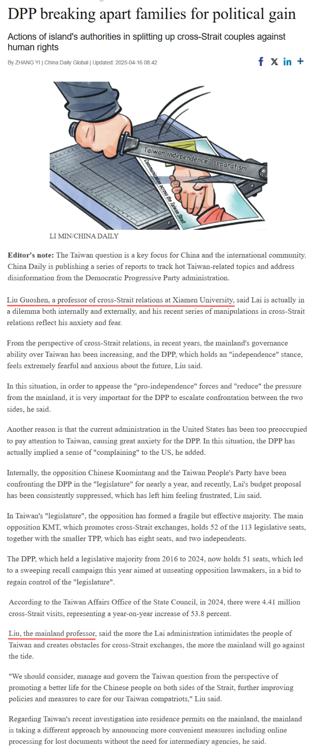 刘国深教授:赖清德当局越是恐吓台湾人民,越是给两岸人民交流交往制造障碍,我们越是要反其道而行之。我们是要站在两岸中国人民美好生活的角度去思考、去经营、去治理好台湾问题,进一步完善照顾台湾同胞的一些政策跟措施。最近我们看到岛内在查所谓的“居住证问题”,大陆这边反其道而行之,大陆方面公布说,台湾同胞如果出现证件遗失什么问题,网上就可以办,不用透过代理机构办理。这样的一些治理水平的提升,其实也是对中国大陆自身治理水平的现代化发展是有帮助的。