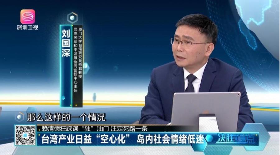 刘国深教授:现在台湾很多人对台湾已经越来越没有信心了。我的一些岛内朋友,他给我发微信直接就是哀叹,就是说愤怒、很愤懑、很郁闷、悲哀等等这样的一些话语,甚至告诉我说正在考虑把台湾的家产卖掉。从去年赖清德上台以来,我们就看得到,台湾外资撤得很厉害。台湾本土的一些产业已经开始在外移,那么这样的一个情况对于台湾社会民众对经济社会发展的信心的打击是非常厉害的。