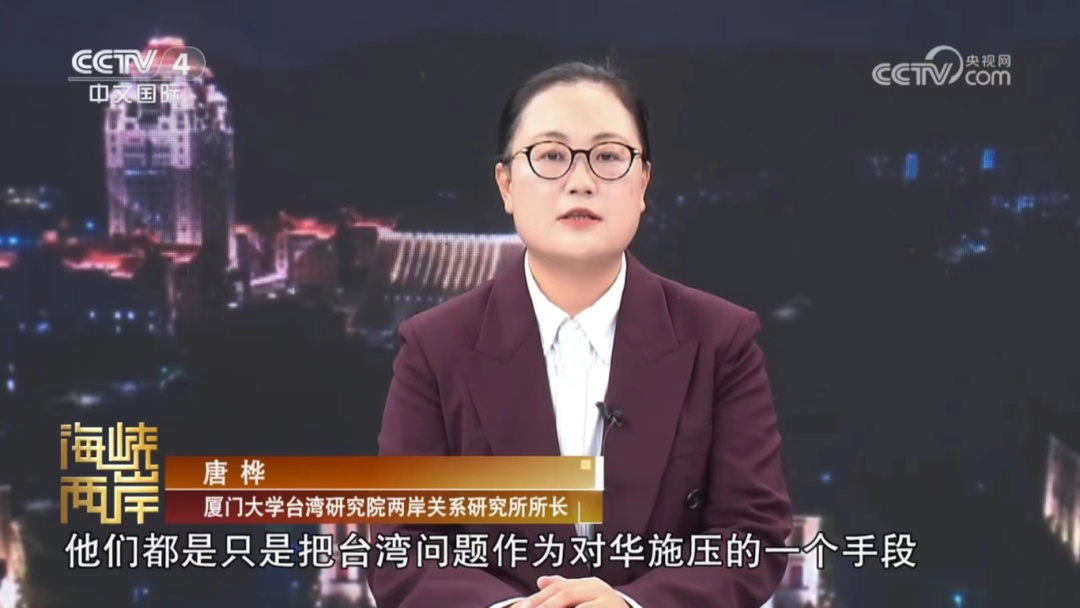 据台湾媒体报道,美国近期频提扩大台湾所谓“国际参与”、“挺台”参与世卫大会等议题,引发了岛内舆论争议。美方还紧抓台积电,试图在人工智能领域进一步对华施压。美国近期一系列涉台动作究竟意味着什么?民进党当局若执迷不悟,将面临怎样的后果?就这样的话题,厦门大学台湾研究院两岸关系研究所所长唐桦受邀参与央视《海峡两岸》节目录制,展开解析。