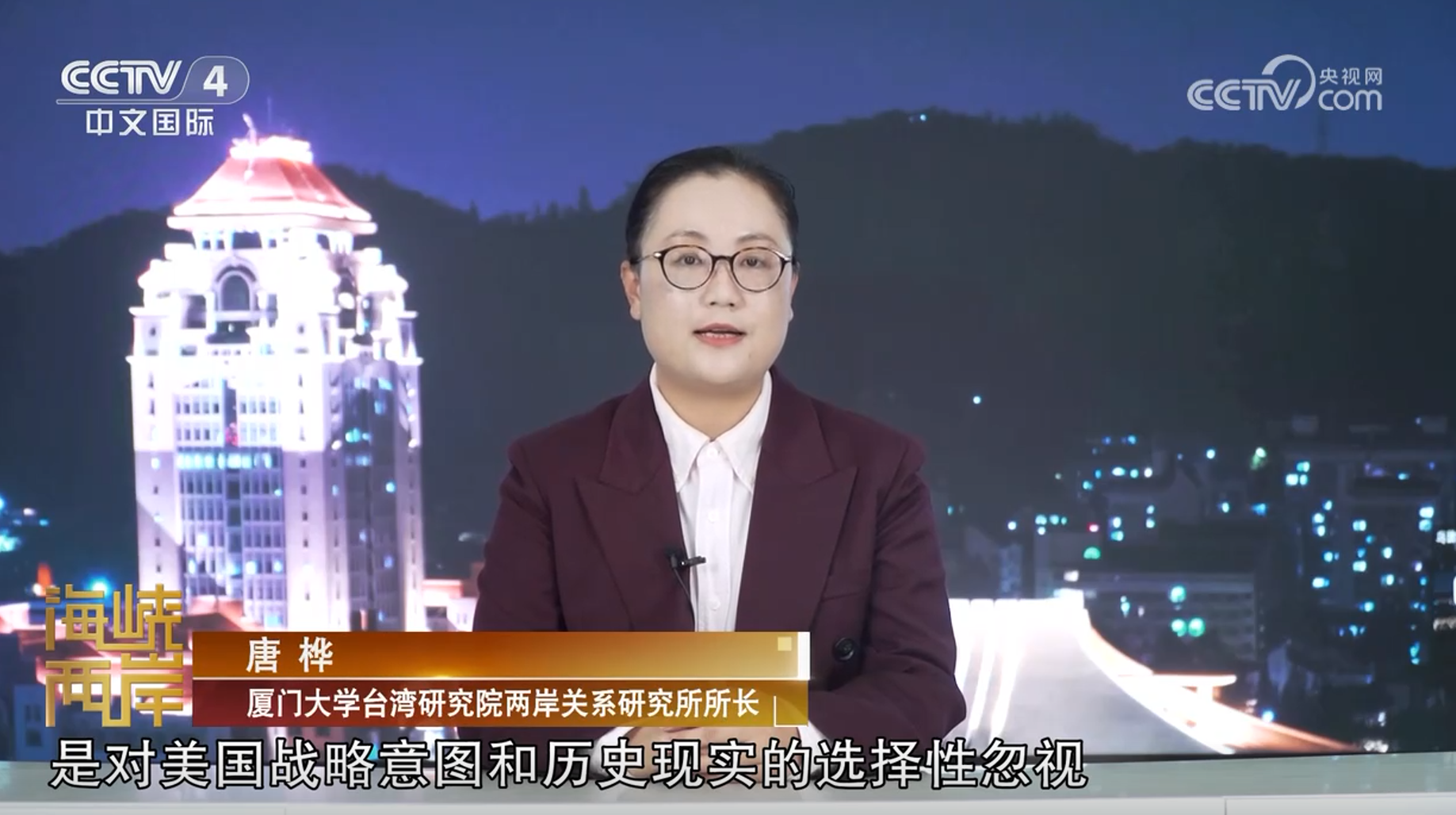 据台媒报道,美乌谈判破局,引发岛内各界高度关注与担忧。对此,有声音指出,美国有四个理由不会抛弃台湾。这四个理由包括哪些?民进党当局是否还在强撑?就这样的话题,厦门大学台湾研究院两岸关系研究所所长唐桦受邀参与央视《海峡两岸》节目录制,展开解析。