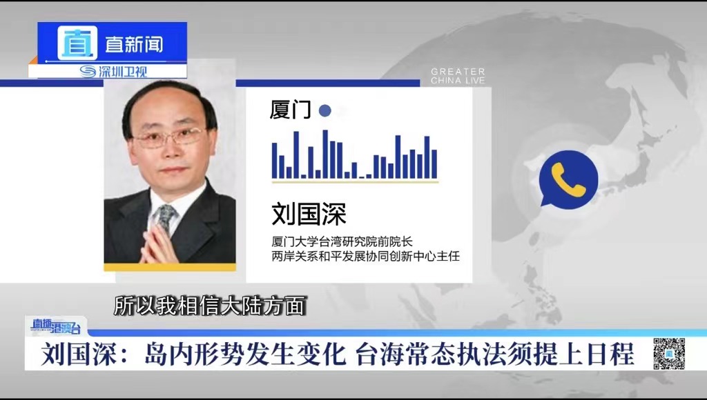 刘国深强调,两岸在海峡区域有很多共同的生产生活的场域空间,这是客观现实的存在。这一地区包括海洋污染治理、渔业资源等事务,其实都是两岸人民的内部事务。长期以来大陆方面在这一地区的管控治理上保持了相对的克制。但随着岛内形势发生变化,台湾海峡区域的管控与执法常态化必须提上议事日程。