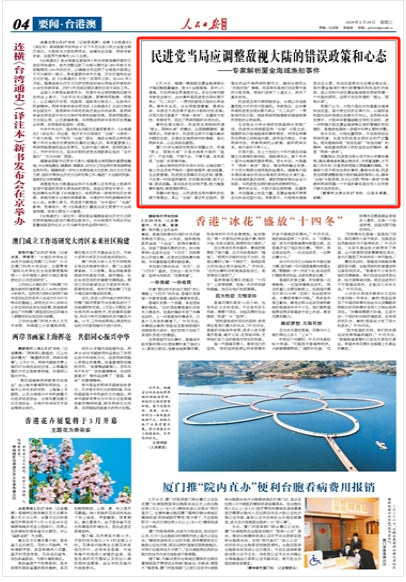 2月14日,福建一艘渔船在厦金海域被台方海巡艇粗暴撞击,致4人全部落海,其中2人遇难,引发两岸各界高度关注。厦门大学台湾研究院院长李鹏在接受新华社记者采访时表示,此次事件是民进党当局长期不承认“九二共识”、一贯对抗敌视大陆的必然结果,民进党当局需调整敌视大陆的错误政策和心态。