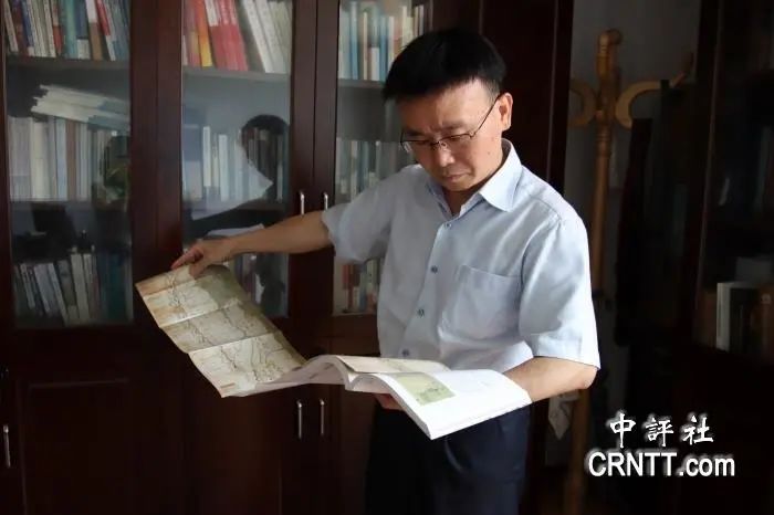 刘国深教授认真翻看地图(中评社 林艳摄)