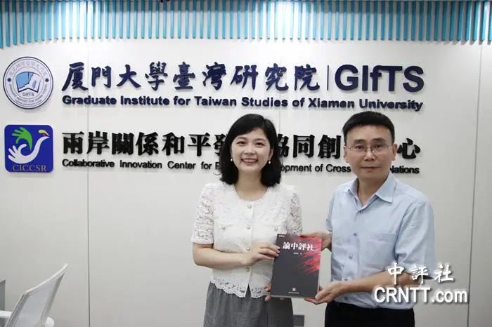 采访结束,中评社助理总编辑兼采访主任林艳向刘国深教授赠予中评社社长郭伟峰最新著作《论中评社》一书。