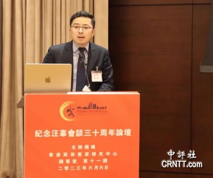 中评社香港6月10日电(记者 卢哲)由香港两岸客家研究中心主办的“纪念‘汪辜会谈’三十周年论坛”日前在香港举行。厦门大学台湾研究院副院长季烨在论坛演讲中谈到“‘汪辜会谈’的序曲与‘九二共识’的达成”及“‘汪辜会谈’的历史启示”时表示,“汪辜会谈”是1949年以后两岸双方首次以受权民间团体名义举行的高层会谈,标志着两岸关系发展迈出了历史性的重要一步;彰显了“九二共识”作为两岸关系和平发展政治基石的重要地位;展现了以对话取代对抗、以沟通化解分歧、以协商促进合作的政治智慧。