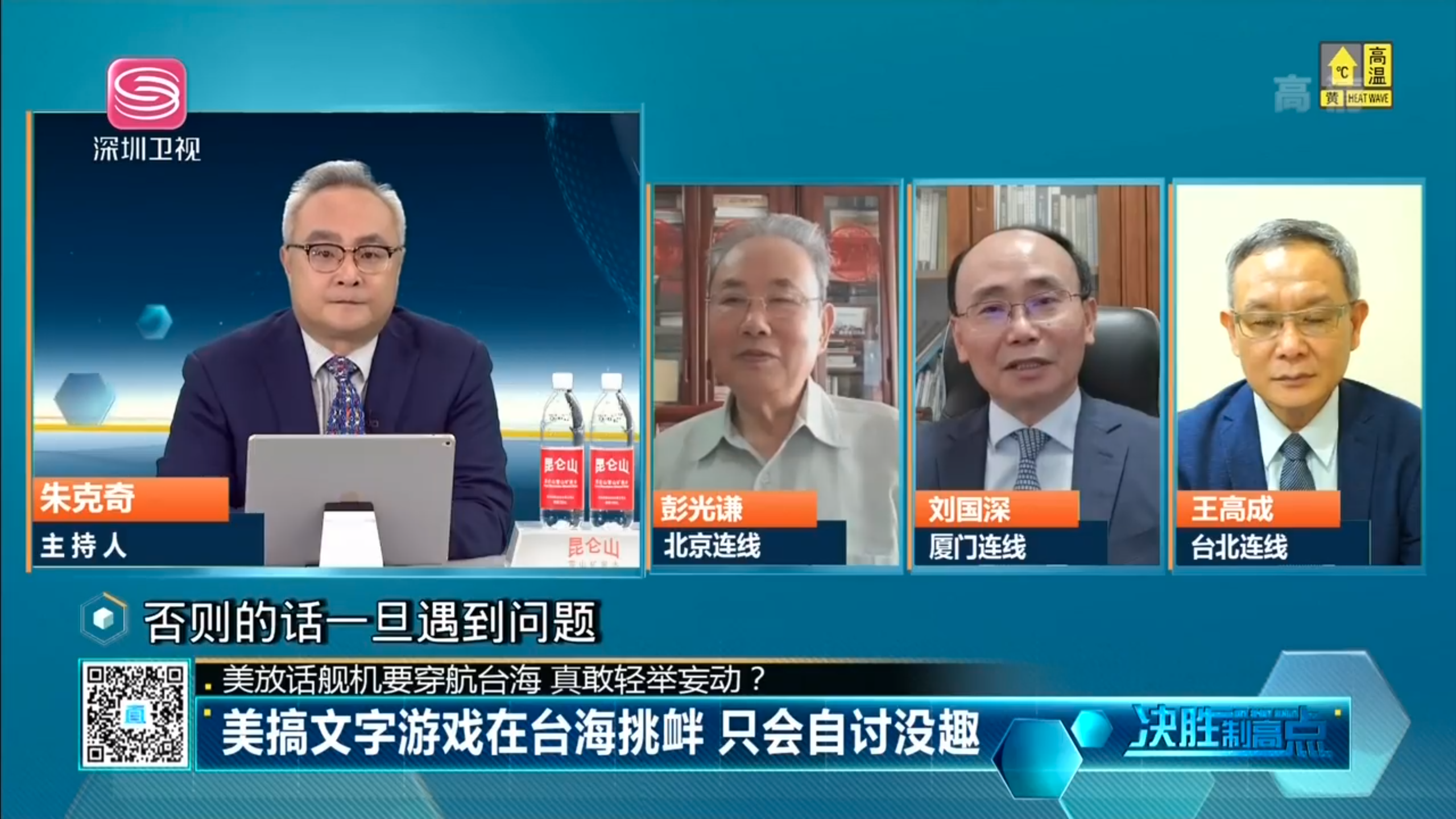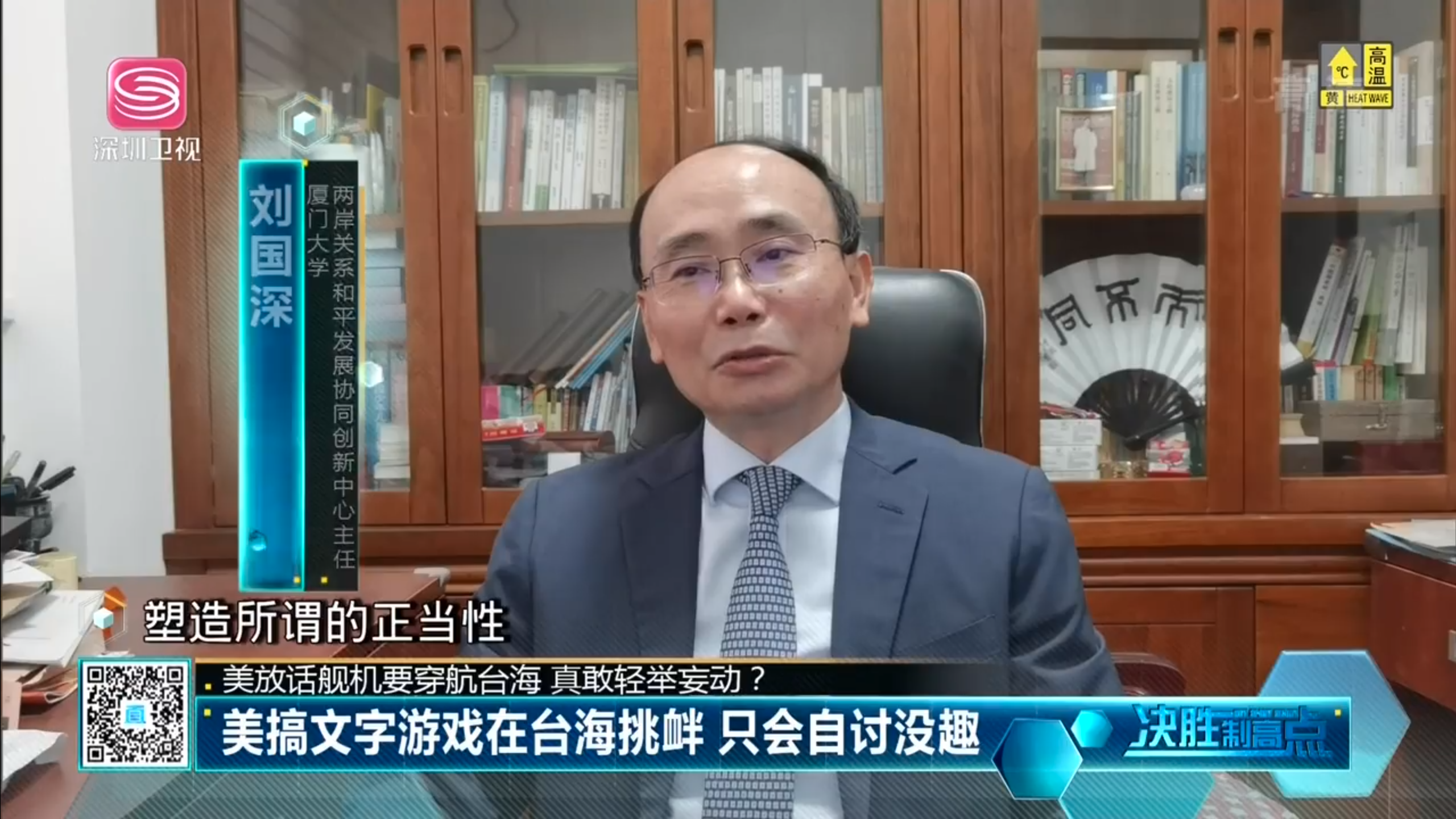 两岸关系和平发展协同创新中心主任、厦门大学台湾研究院特聘教授刘国深近日与北京及台北学者,针对美编造“标准化海空行动”等相关话题,共同接受深圳卫视《决胜制高点》节目连线专访。