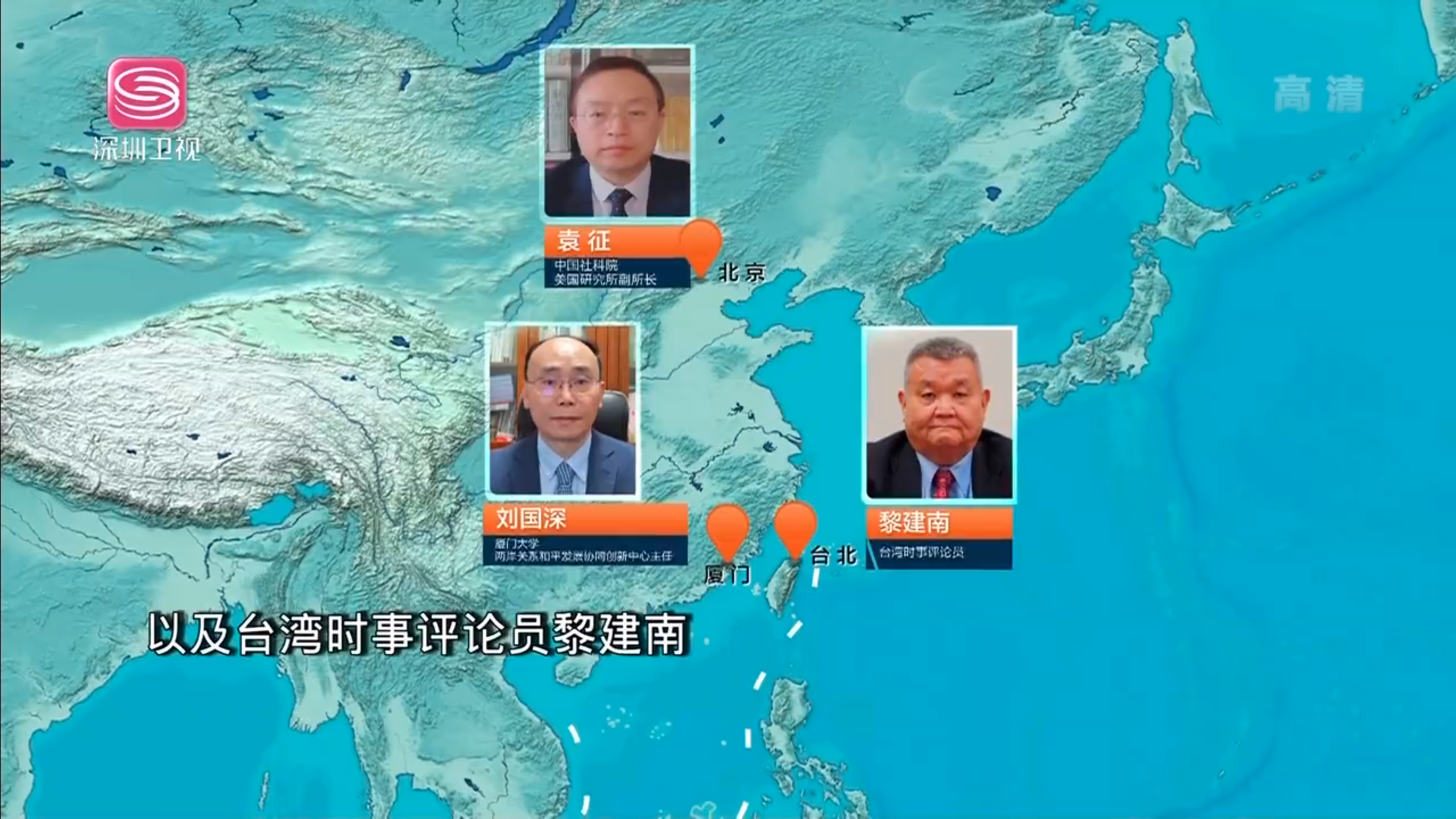 两岸关系和平发展协同创新中心主任、厦门大学台湾研究院特聘教授刘国深近日与北京、上海及台北学者,针对美国大打“台湾牌”等相关话题,共同接受深圳卫视《决胜制高 点》节目连线专访。